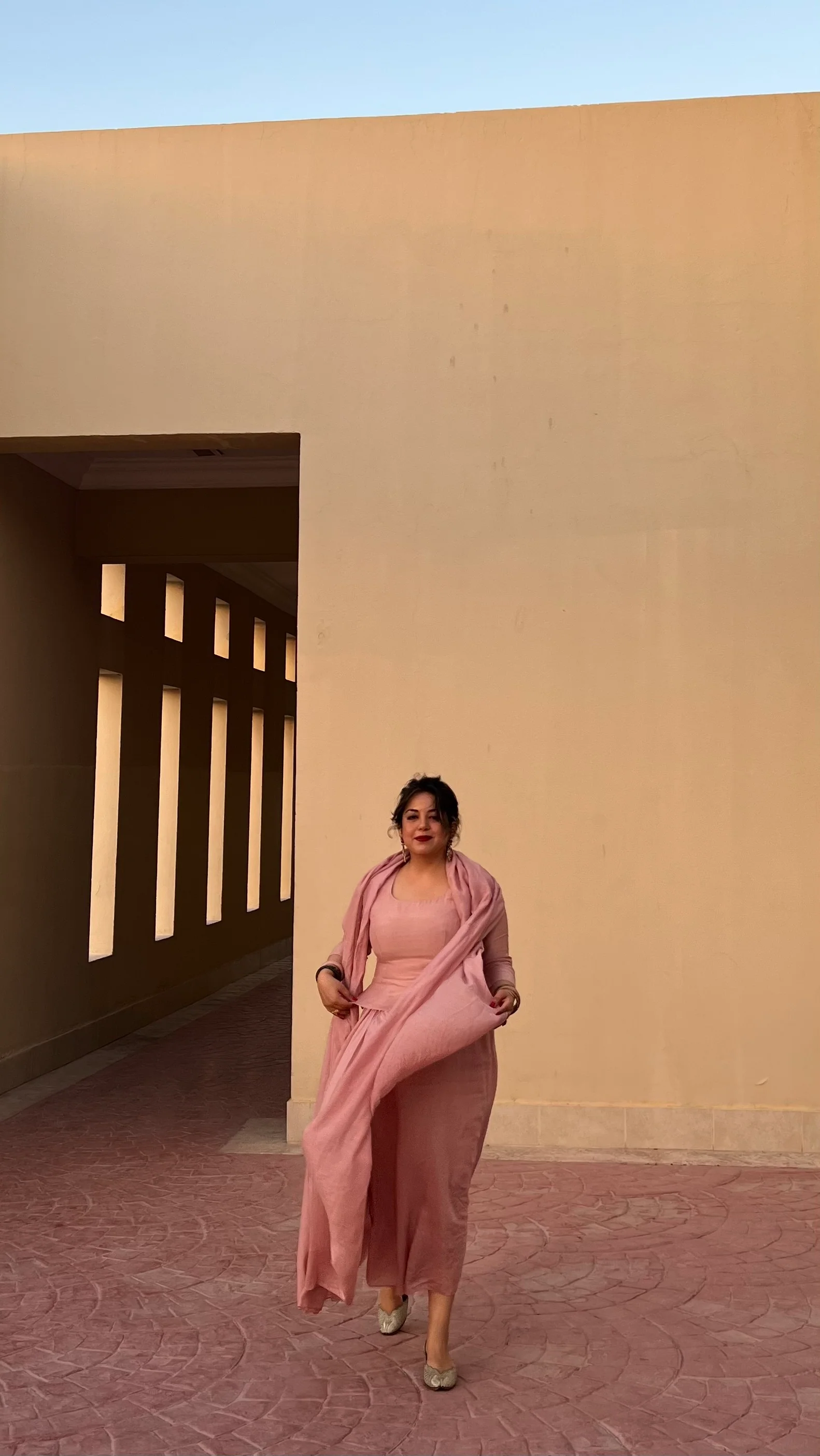 A Pastel Pink cotton silk pre-draped ankle length sari dress.