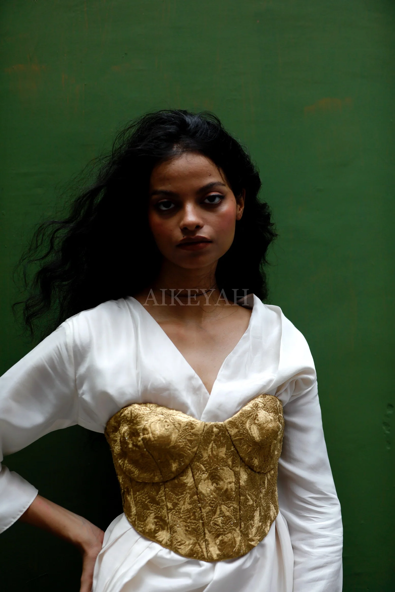 A Zari embroidered corset with a back tie up.